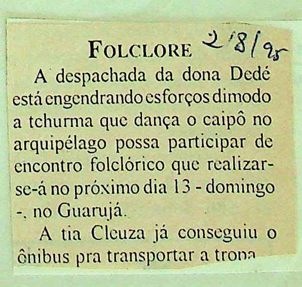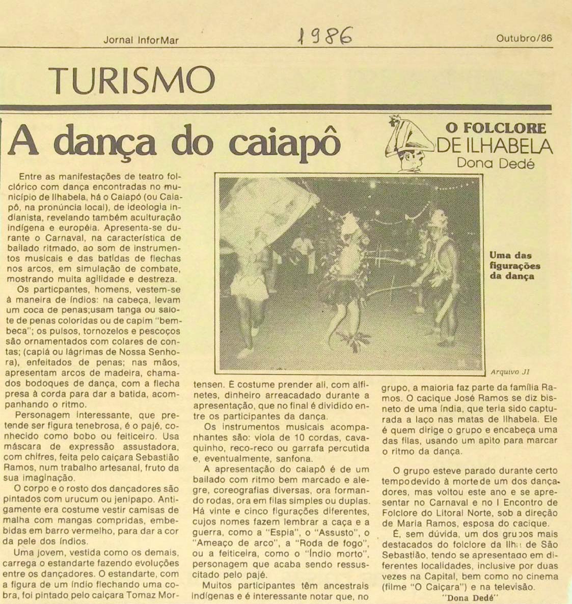 Apesar de sua importância, o Caiapó de Ilhabela foi pouquíssimo documentado e acabou apagado da história do litoral. Nesse contexto, tornar público o precioso e inédito acervo de Dedé sobre o tema é reconhecer a importância das culturas originárias na formação identitária caiçara, mantendo viva uma tradição que, infelizmente, não é mais realizada.